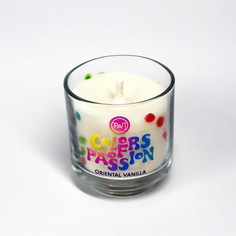 Unveil the magic of “COLORS OF PASSION”, a candle that redefines elegance with a touch of playfulness. Infused with the warm, exotic essence of oriental vanilla, it envelopes your senses in a luxurious embrace, balancing creamy sweetness with a hint of mystery.